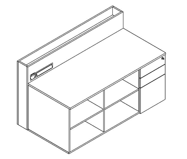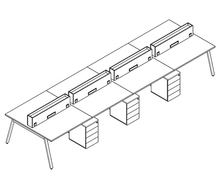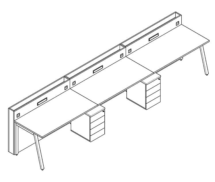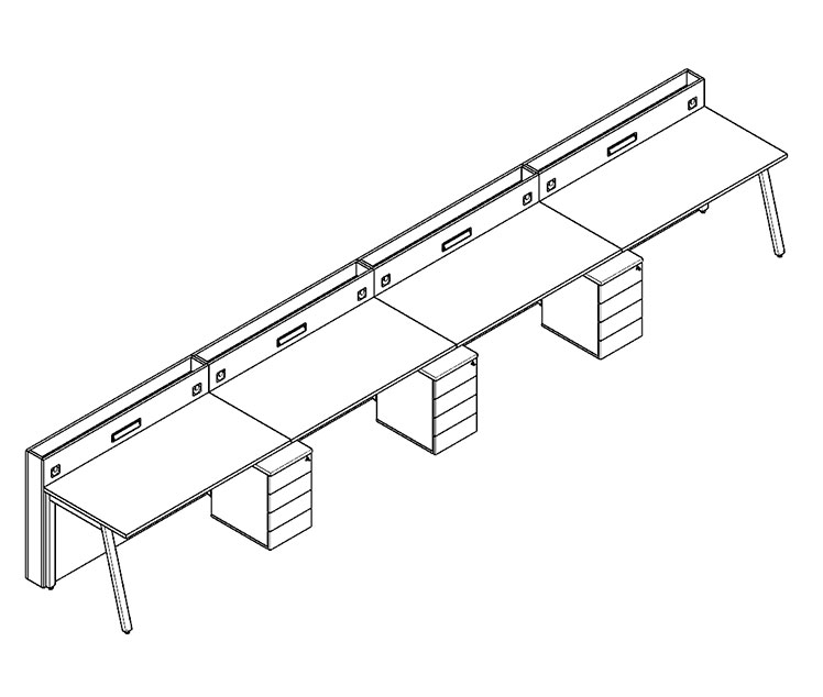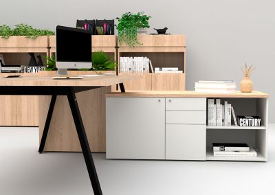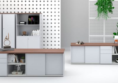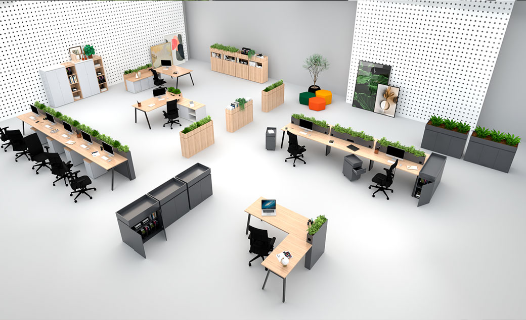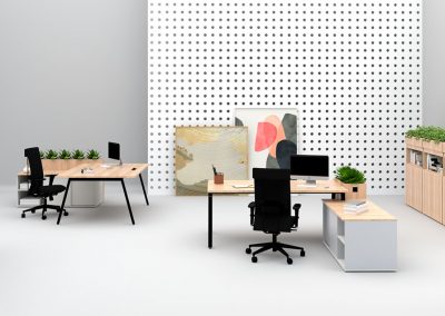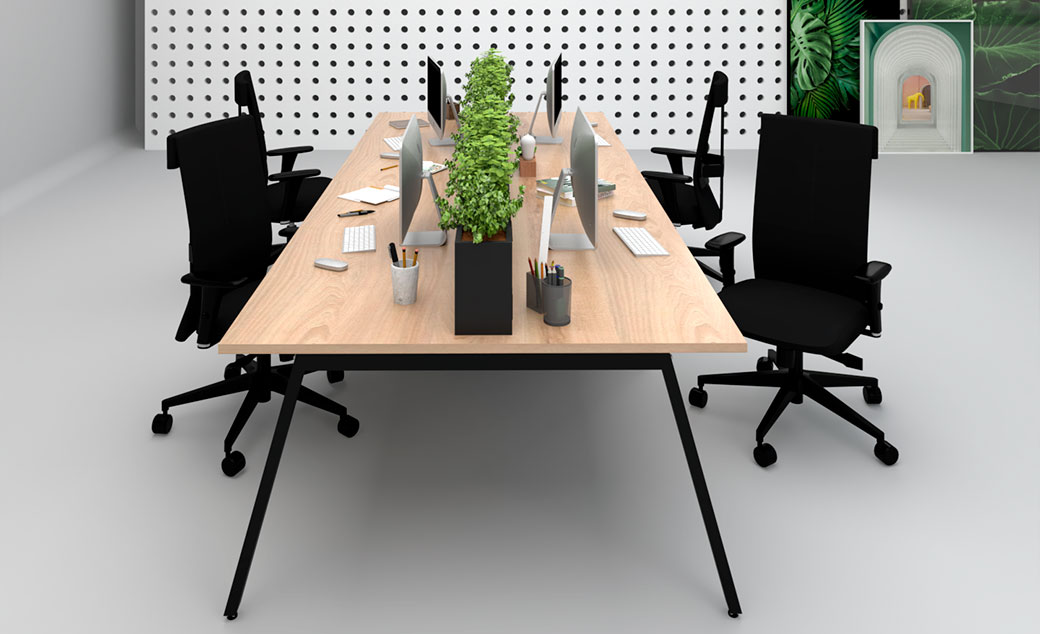 A linha conta com mesas gerenciais, diretivas, staff, armários e gaveteiros em diversas composições e é produzida para otimizar o espaço corporativo, unindo o orgânico e o tecnológico.