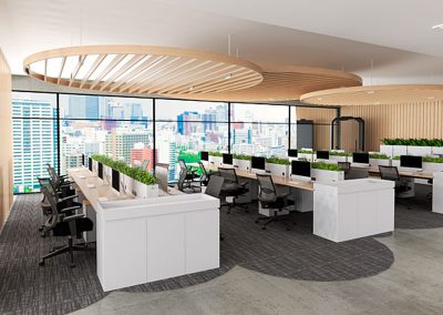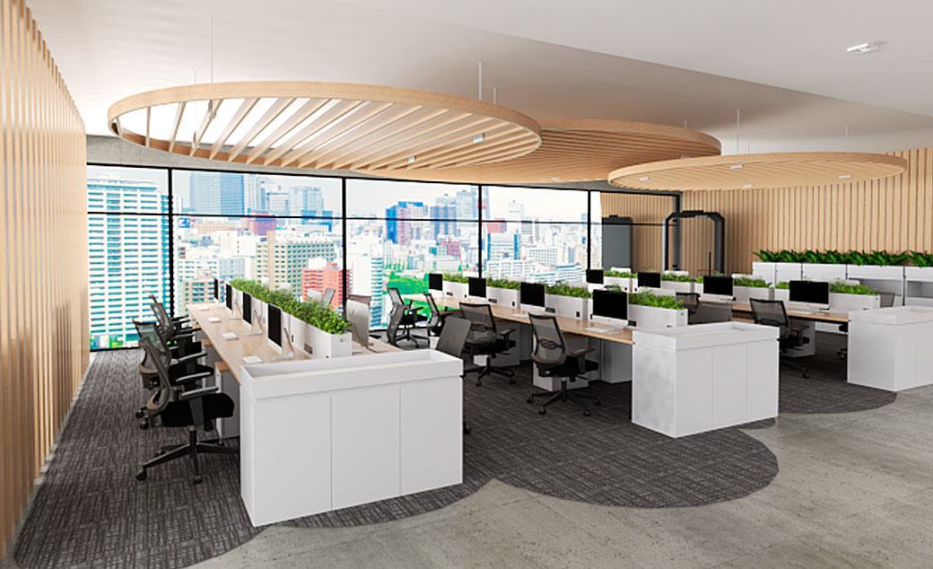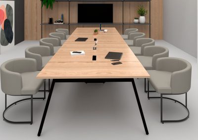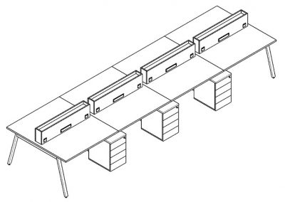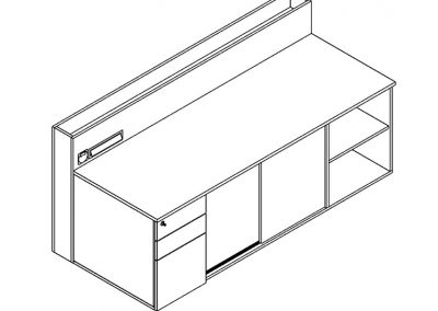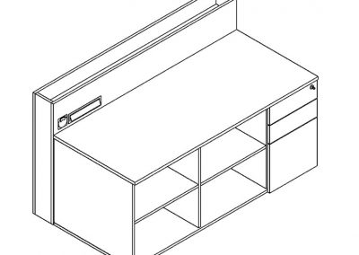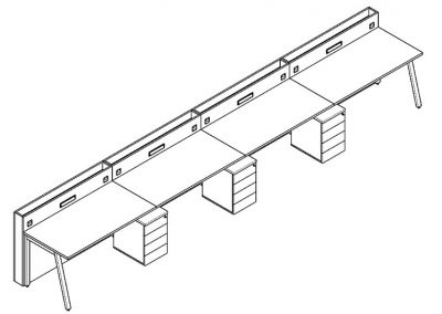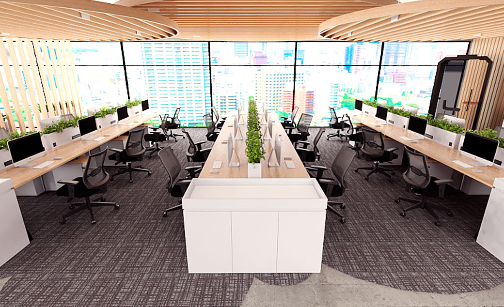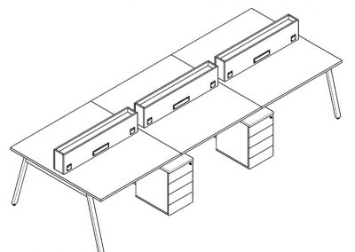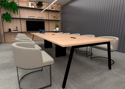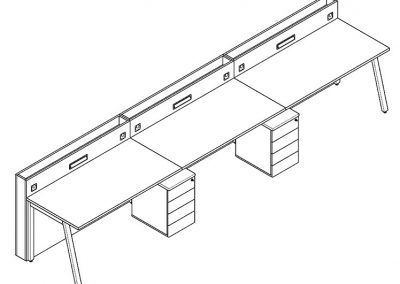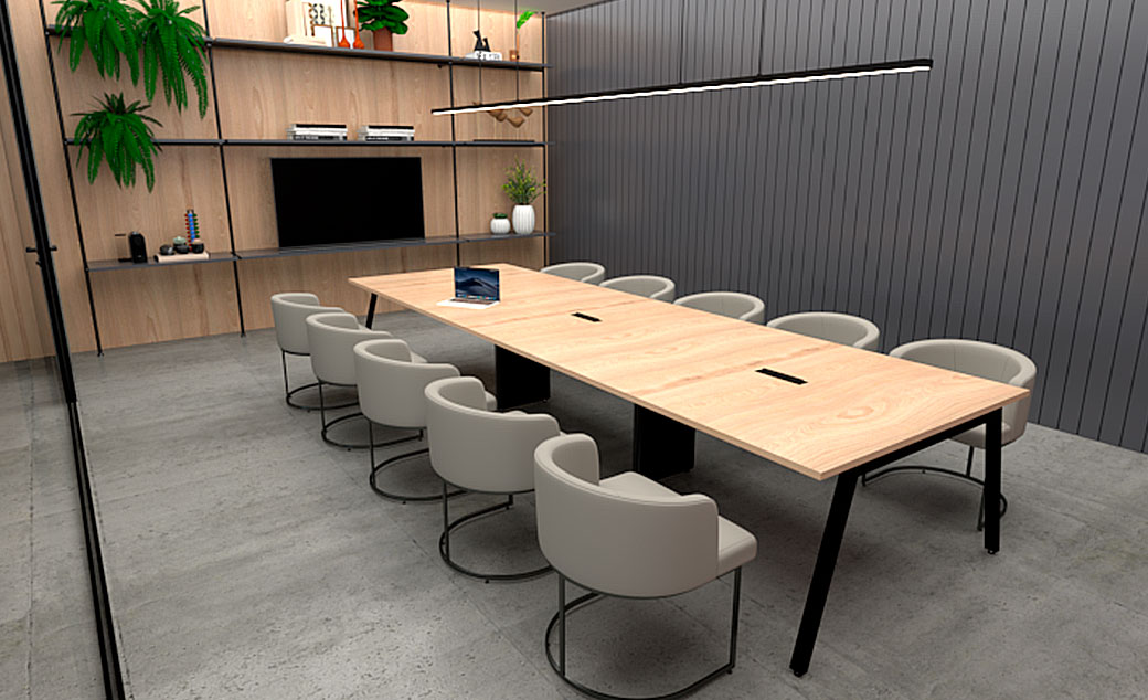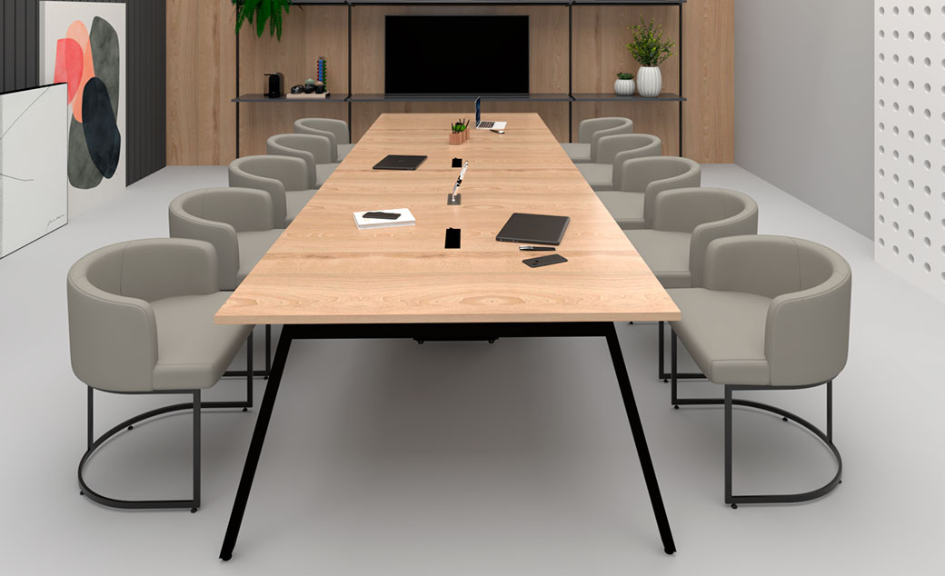 A linha conta com mesas gerenciais, diretivas, staff, armários e gaveteiros em diversas composições e é produzida para otimizar o espaço corporativo, unindo o orgânico e o tecnológico.