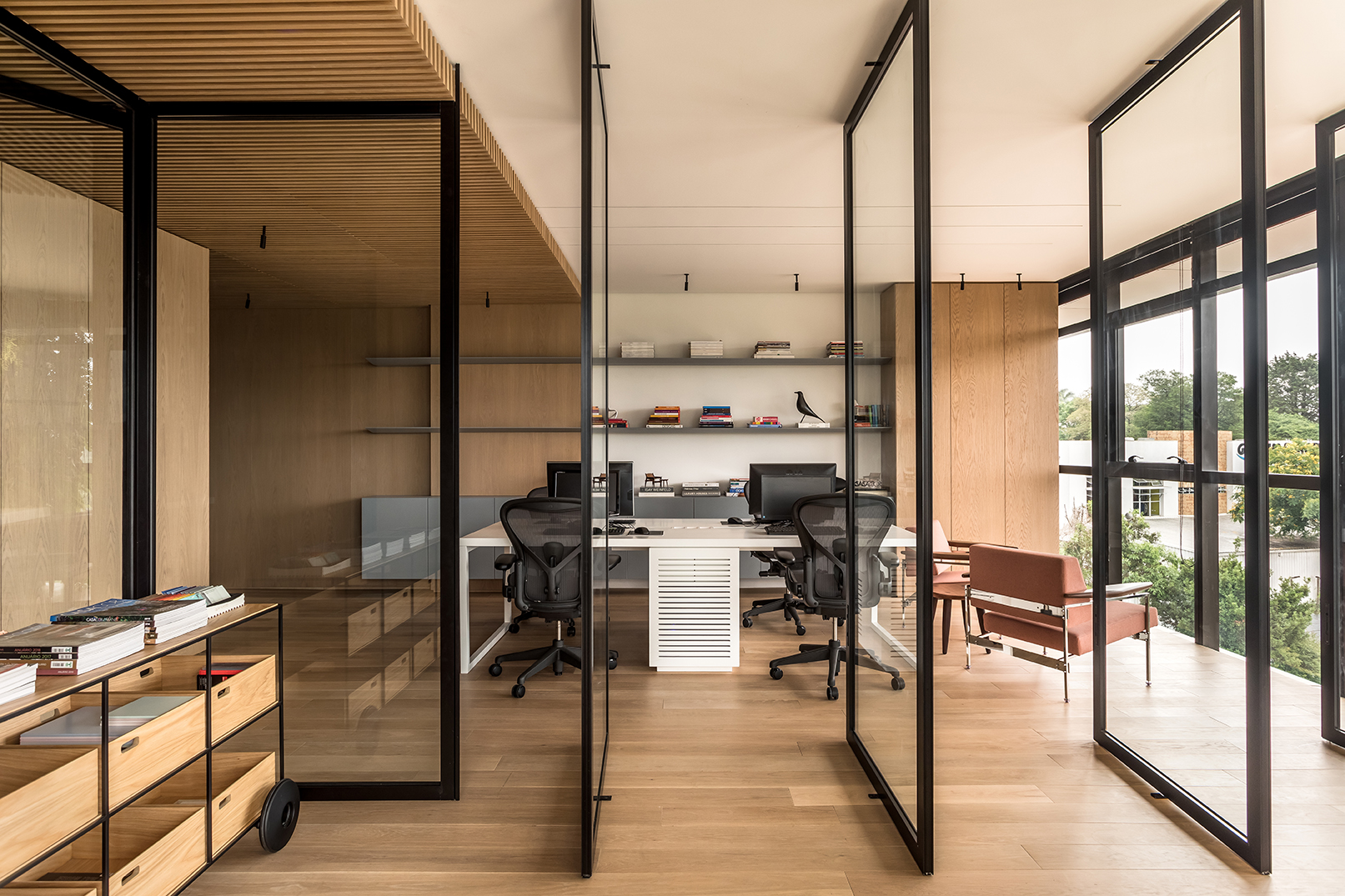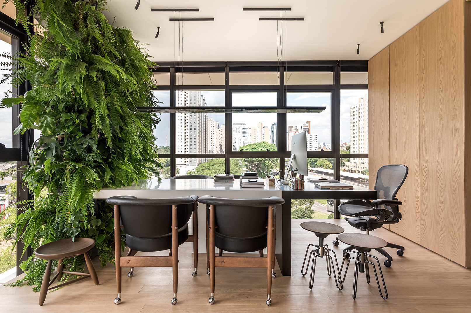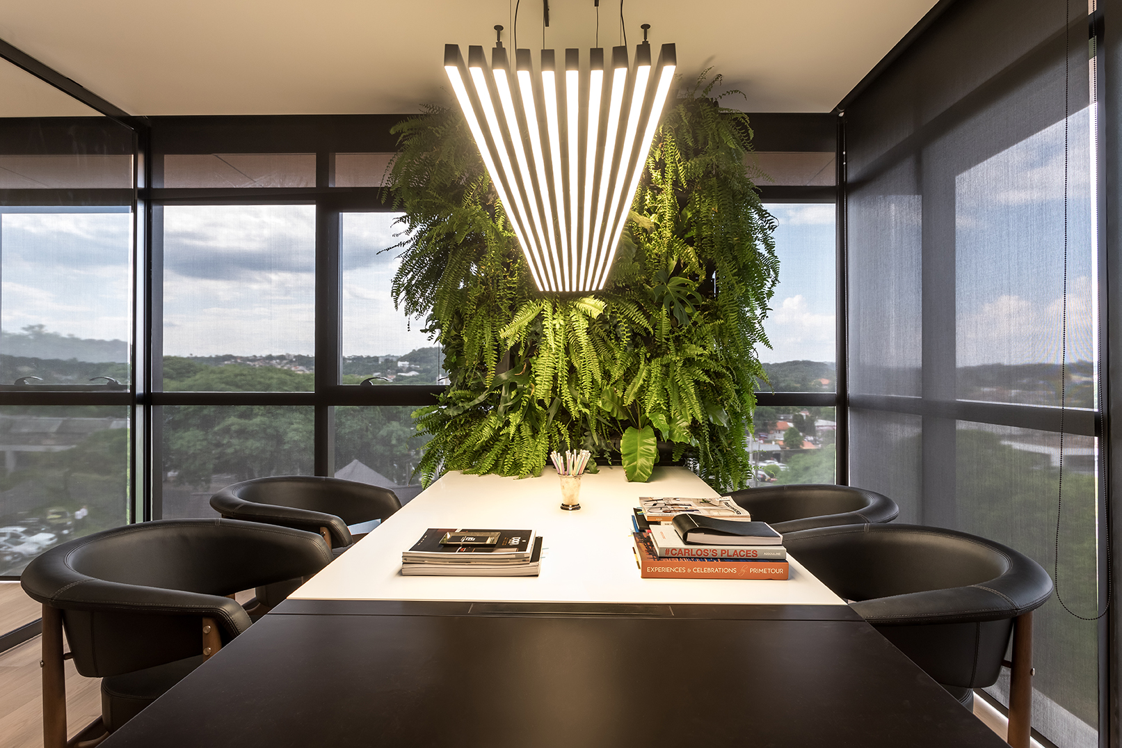 PRODUTOS: Divisórias articolato de vidro Lumina, mesas, estações de trabalho e marcenaria corporativa.